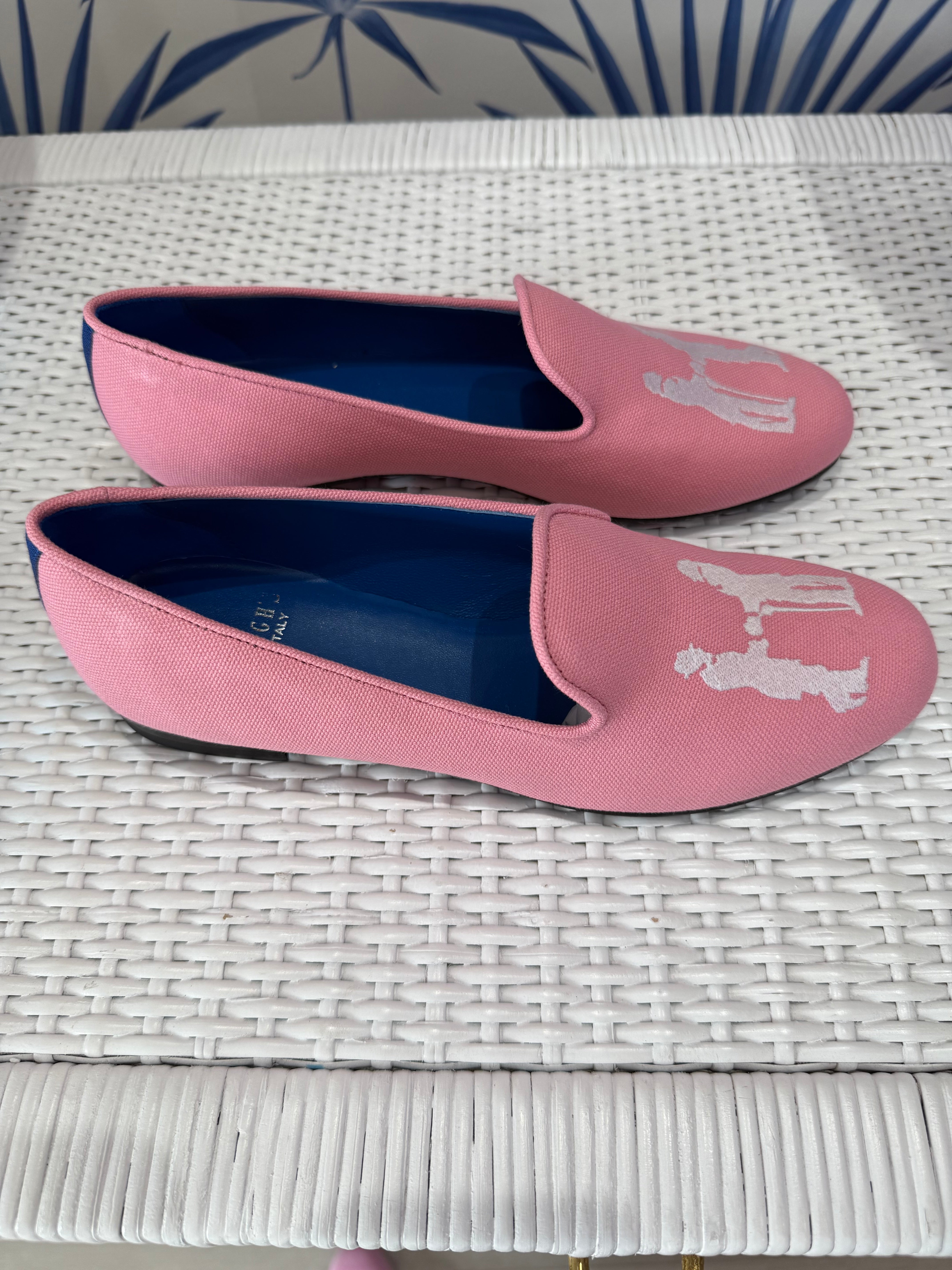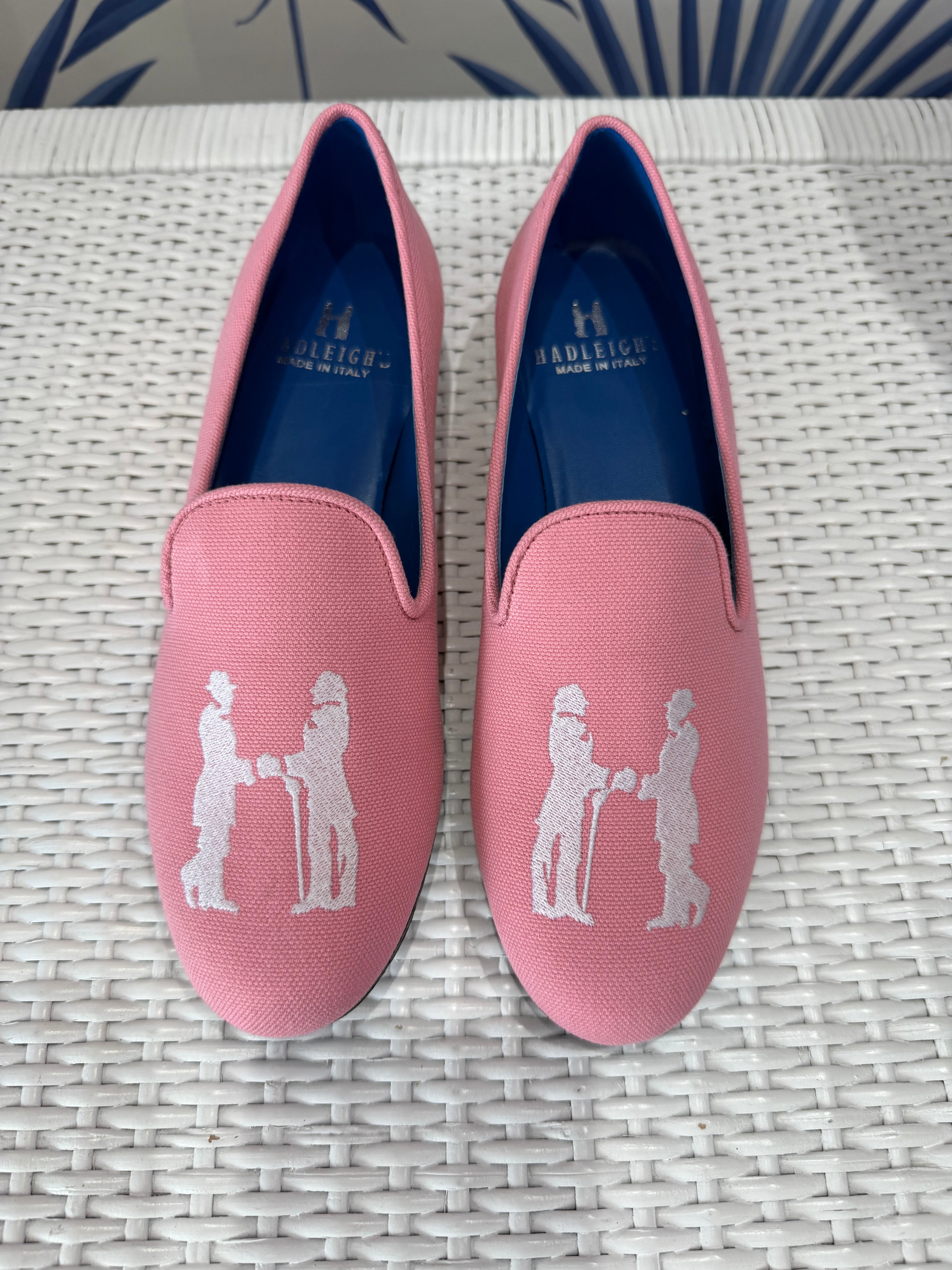 Handmade in Italy using the finest fabrics and embroidered craftsmanship, Hadleigh’s signature smoking slippers are the timeless answer to leisurely, yet luxurious, footwear for any style. Each pair features a bold blue sole, in addition to Hadleigh’s iconic logo with two refined gentlemen shaking hands, and are the perfect polished flat no matter what the occasion. Discover a new, elegant standard of carefully crafted footwear.