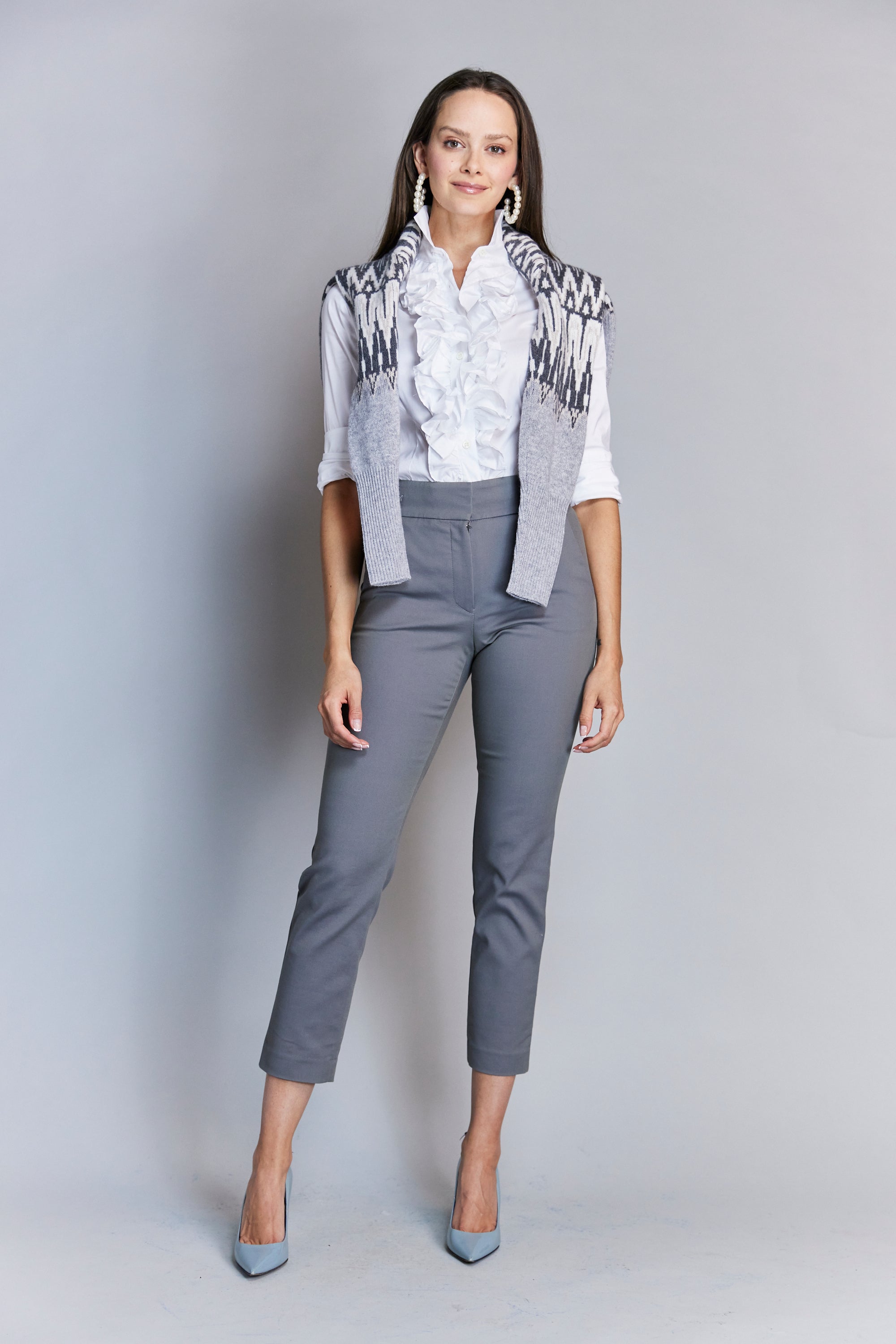 Let us introduce you to our beautiful Belinda, a feminine favorite and Hadleigh's signature blouse. Each ruffle is cut by hand and meticulously sewn in Italy with custom mother of pearl buttons to compliment each blouse, carefully crafted using 100% cotton. With a silhouette that contours and flatters every body type, she is a steadfast staple, especially when coupled with a bold blazer, our flirty Eleanor Skirt and your go-to slippers, heels or sneakers.