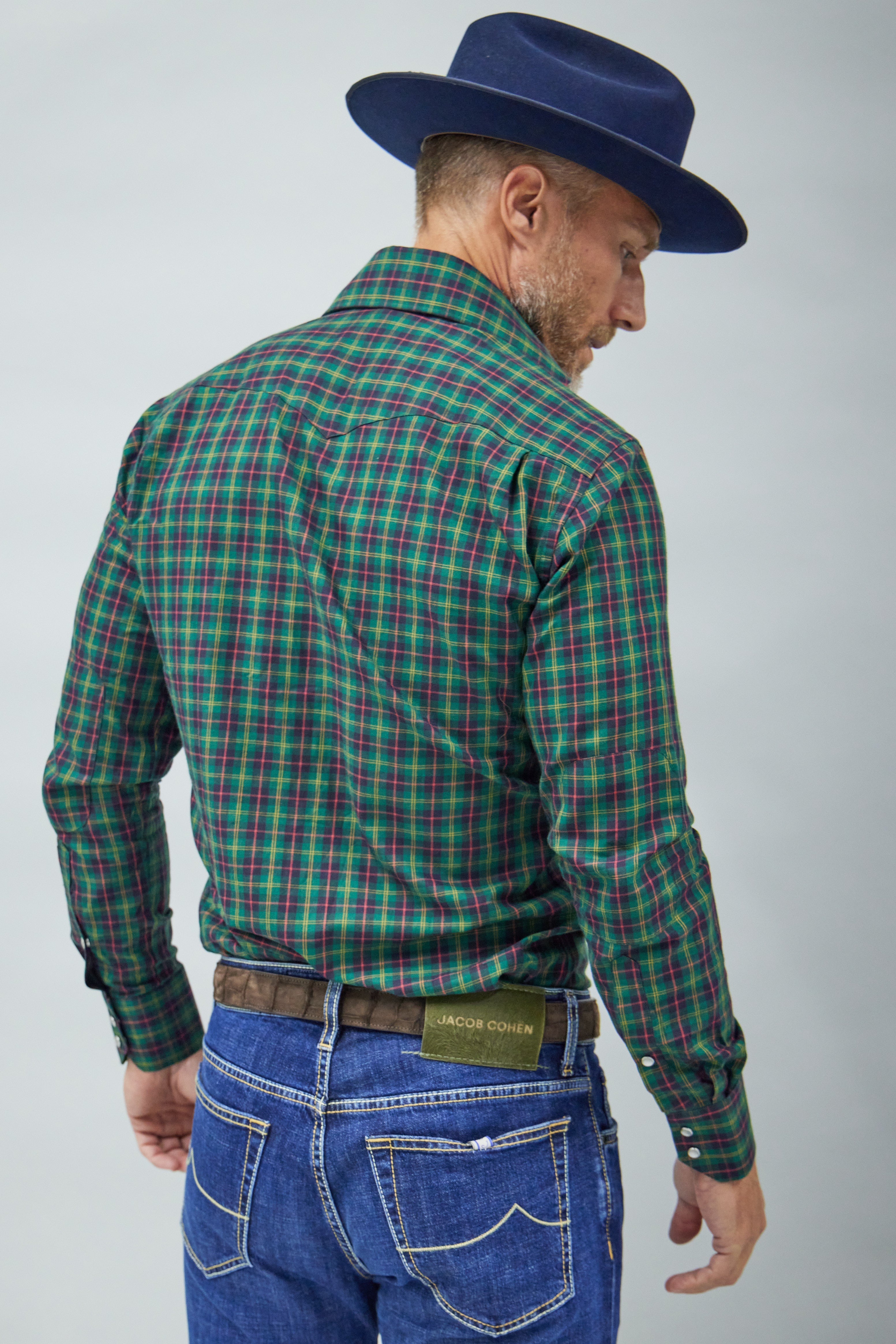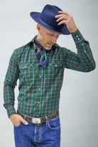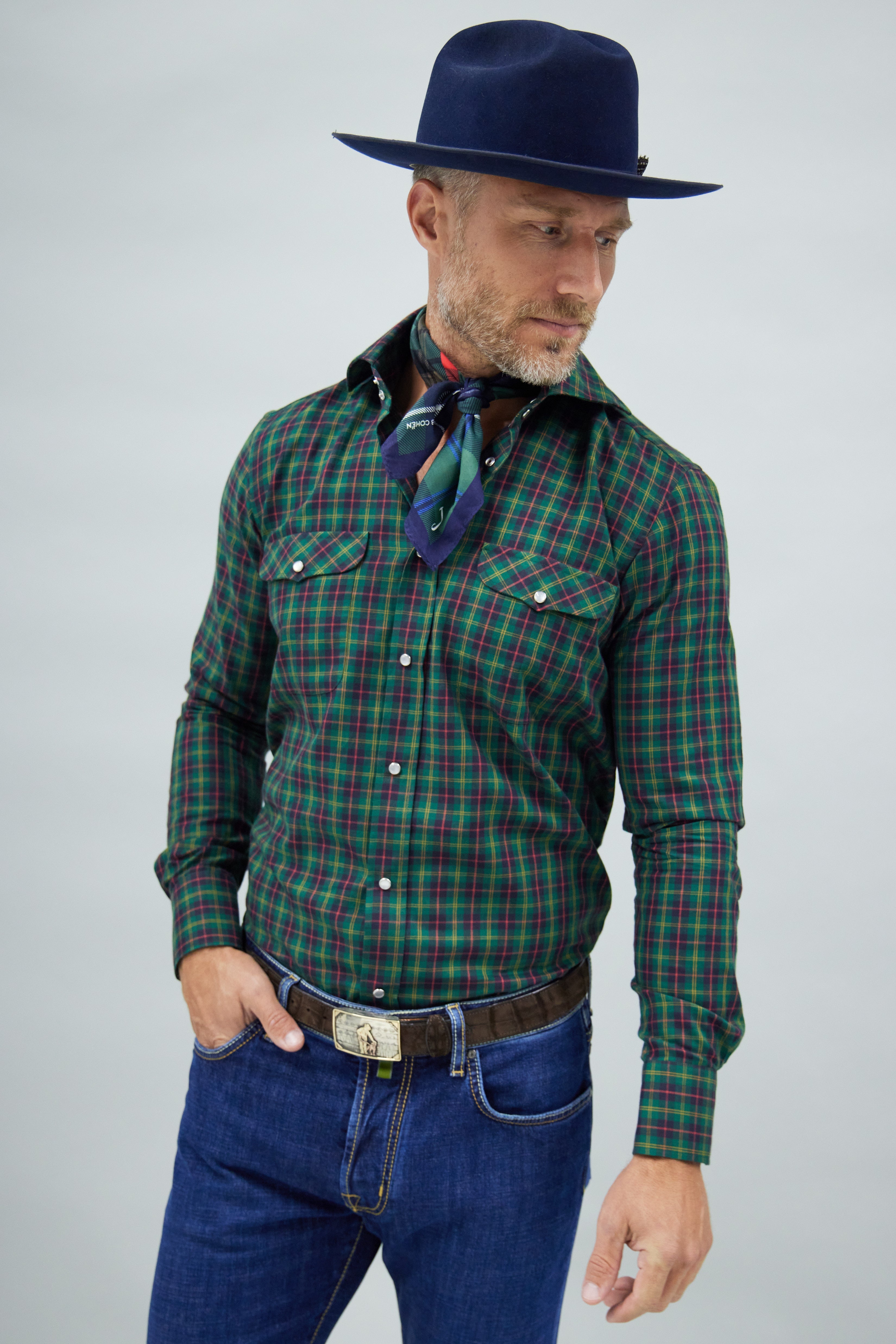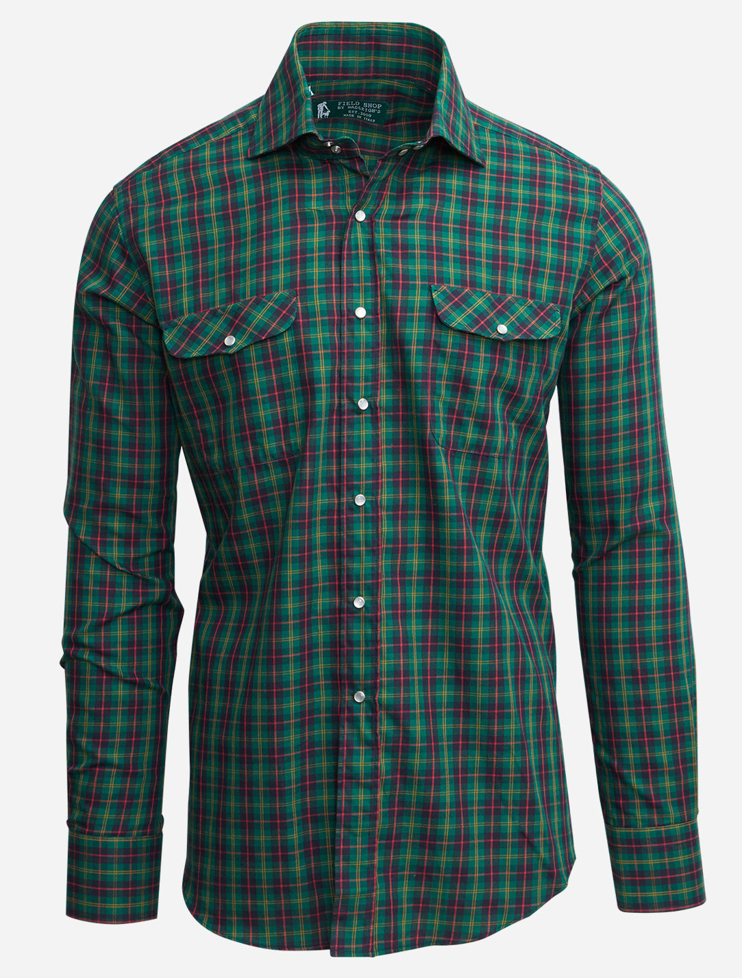 Practical and polished, this Green Tartan Plaid field shirt features pearl snap cuffs and placket. Handcrafted for in the field and ultimate flexibility, this shirt is essential for any sportsman. Luxuriously designed to achieve the highest quality and to weather the most challenging outdoor elements, experience Hadleigh’s not-so-standard sports shirt. Part of our exclusive holiday collection.